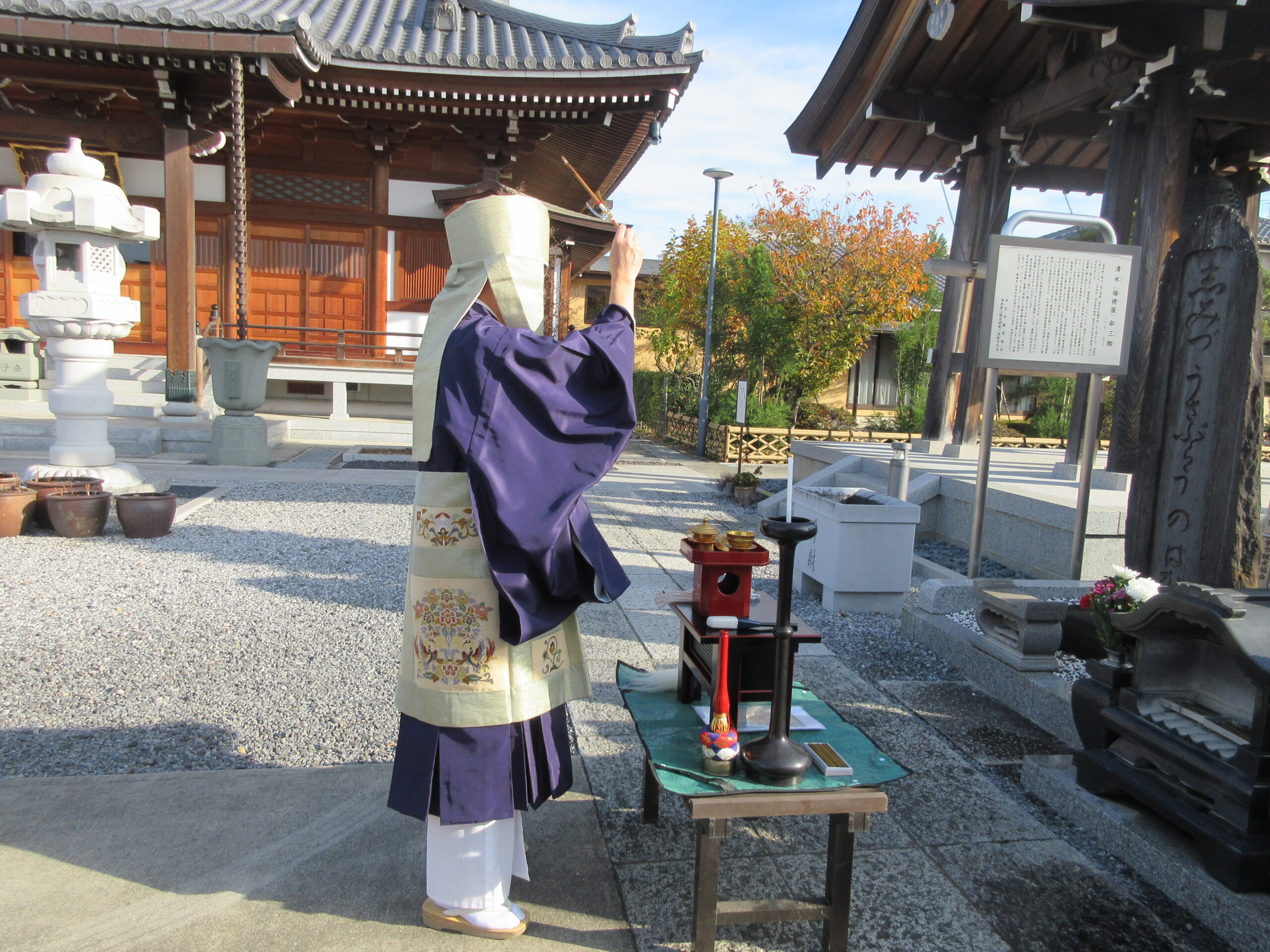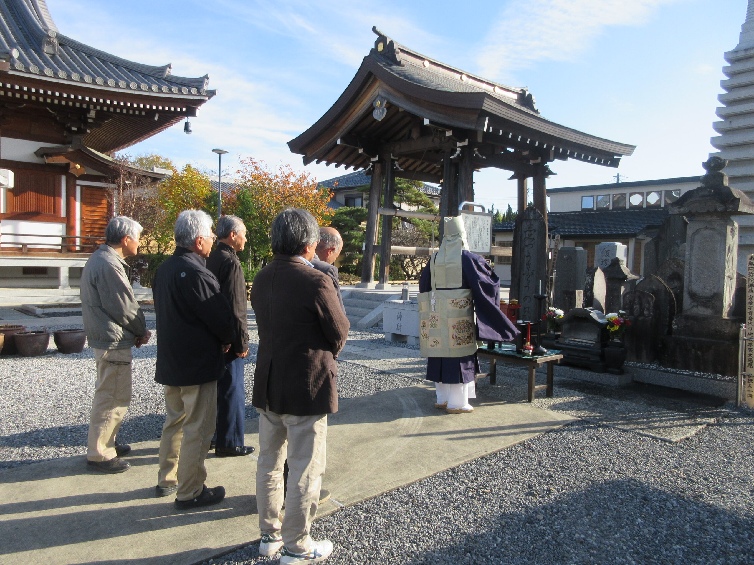 移転完了後、2025年11月24日に地蔵尊世話人関係者様と共に開眼法要が執り行われました。以降は正光寺境内にて、地域の子供たちを見守って下さります。子供たちの安全を正光寺共々祈願いたします。